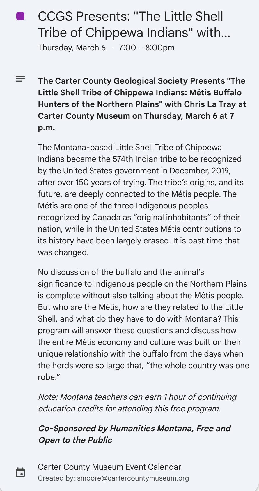 I’m heading way out to Ekalaka, Montana, to present at the Carter County Museum on Thursday the 6th. Does anyone from that area even read this newsletter?! If so, come join us!