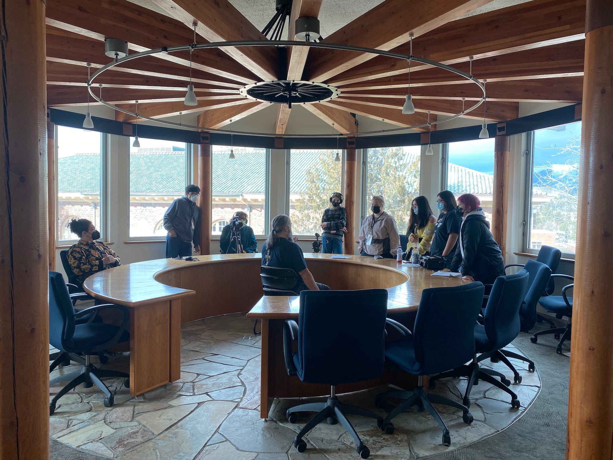 I spent this past weekend working with students from places around the CSKT Reservation just north of me, as well as from the town of Harlem and students from the Fort Belknap Indian Community (Home of the Nakoda and Aaniiih Nations). This was at the request of the fine folks from the Big Sky Documentary Film Festival as part of their “Teen Doc Intensive” program. These high schoolers are budding filmmakers and I was asked to be the subject for a documentary about … well, me. It was all a vehicle for them to learn the various tasks related to bringing such a film to life. I had a great time fielding their questions, being directed this way and that, hanging out with them, etc. Their film will debut as part of the festival on Friday the 25th, but I don’t know yet what time. There will be a panel discussion of it after it plays, which I have been asked to participate in. Of course I said yes!