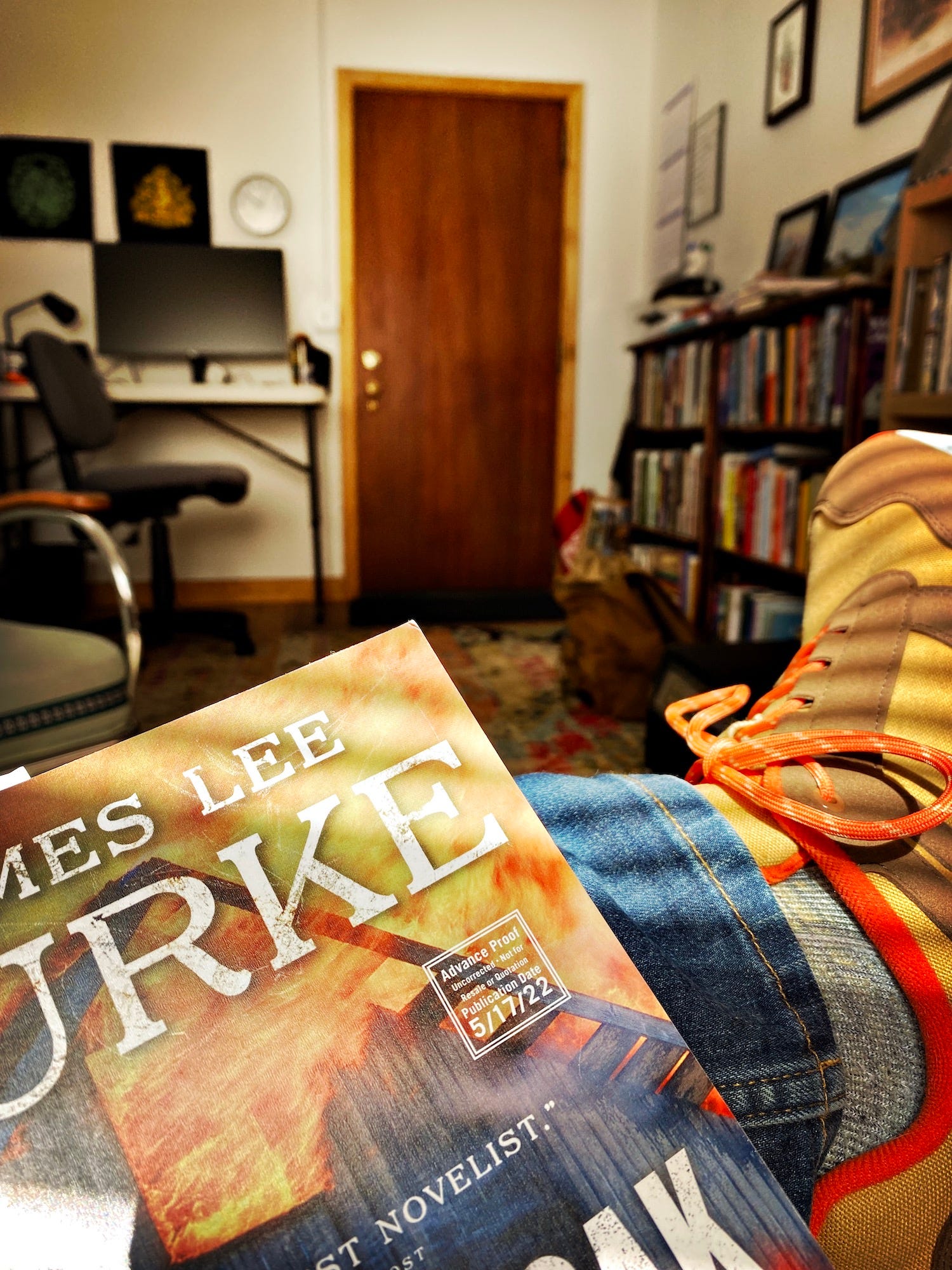 Our conversation didn’t have as much laughter as usual, but there was some. Anymore we go deep on the metaphysical, given how much of Jim’s work has gone that direction too. We talked a lot of history, of course, and the nature of good and evil and redemption. Most of it won’t go into my article but then again, most never does. We had no idea what was happening in Texas while we chatted.