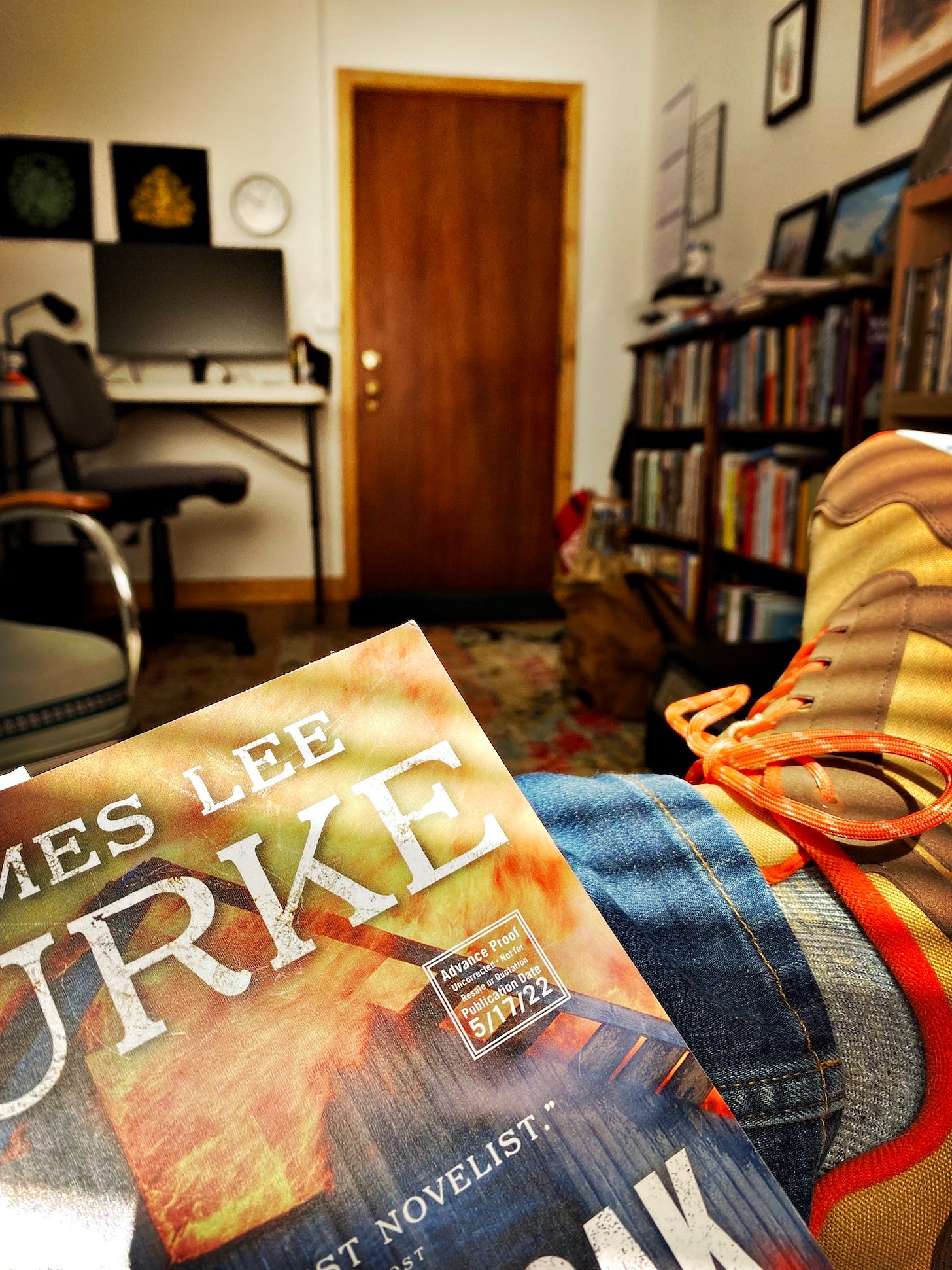 I found some piece of mind later. I concluded my appointment (it was at the tire shop2, where I was having a flat repaired that occurred at the highest possible point of the Red Sleep Mountain drive at the Bison Range yesterday afternoon) and, with another appointment slated for noon, I relocated to my Missoula lair with two hours on my hands. I kept doing what I’d been doing while waiting for my truck: reading for pleasure. Something I haven’t really done for months, if not a couple years. Not even entirely for pleasure, though; my next appointment was to sit down with my friend Jim to talk about his new book for a piece the Missoulian will run over the weekend. I was revisiting the book to freshen my memory. The better I’ve come to know Jim the closer I feel to his work, and have decent guesses as to the bits that are more autobiographical than others. It isn’t always happy. In this case the book echoes with Jim’s sorrow in the wake of his daughter’s death two years ago, expressed through the musings of his narrator. Jim addresses the passing of his daughter in a short message at the front of the book called, “A Letter to Readers from James Lee Burke.” A snippet: