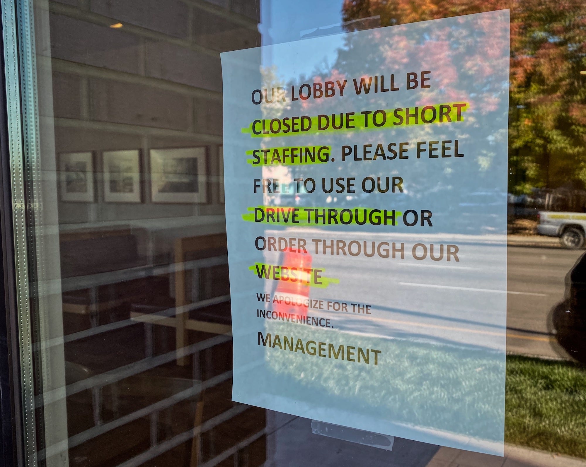 I arrive to my hotel late and sleep late the next morning. I wake hungry and in coffee crisis. I know there is a Panera Bread on the corner between my hotel and where the event is being held so I plan to stop there during my walk over. Except the Panera lobby is closed due to staffing and I’ve missed the conference breakfast. The hotel one too. So I huff and puff and I sit down at a metal table outside the store and download the stupid Panera app. It doesn’t go smoothly but I make it happen. Then I can’t find where I am supposed to pick up this carryout order because all the doors are locked. I follow another woman in a similar situation in walking up to the drive-thru window. The staff inside look worn-out and confused. Eventually I get what I ordered and I find myself back at the patio table with two – yes, TWO! – large iced coffees and a mediocre – yes, MEDIOCRE! – breakfast sandwich. It’s a beautiful day though and I linger and feel my happier mood swell with the accumulation of that cold, delicious beverage.