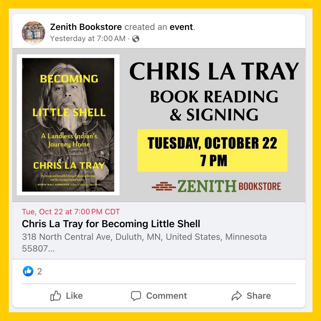 Tues, Oct. 22 – Zenith Bookstore, Duluth, MN – 7:00pm – Details7