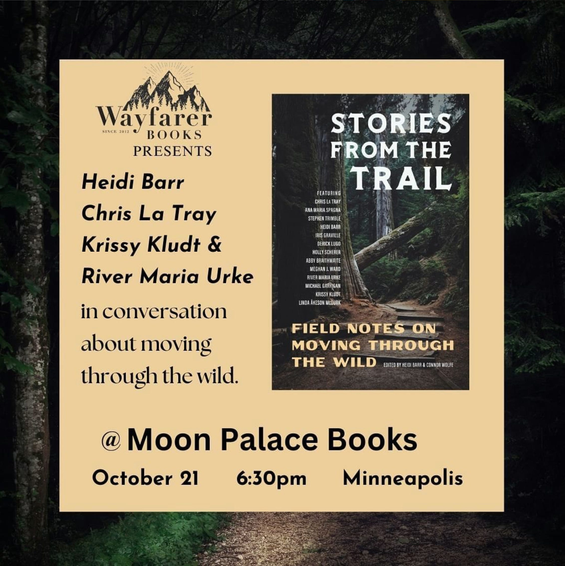 Mon, Oct. 21 – Stories from the Trail event at Moon Palace Books, Minneapolis, MN – 6:30pm – Details