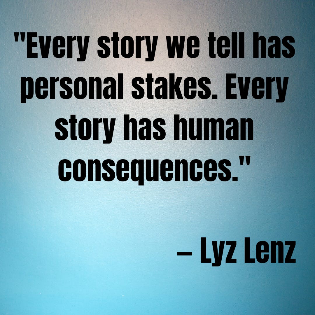 The challenge of writing memoir that honors the personal story while *also* turning it outward is the struggle I've been waging with my book (that and having to live through it enough to have some perspective). How does this personal thing that happened, the cultural forces that got us into that cul-de-sac, and the actions I took to get out, open a space where we can explore what it means to live in this world, what it might mean to live differently in this world?
